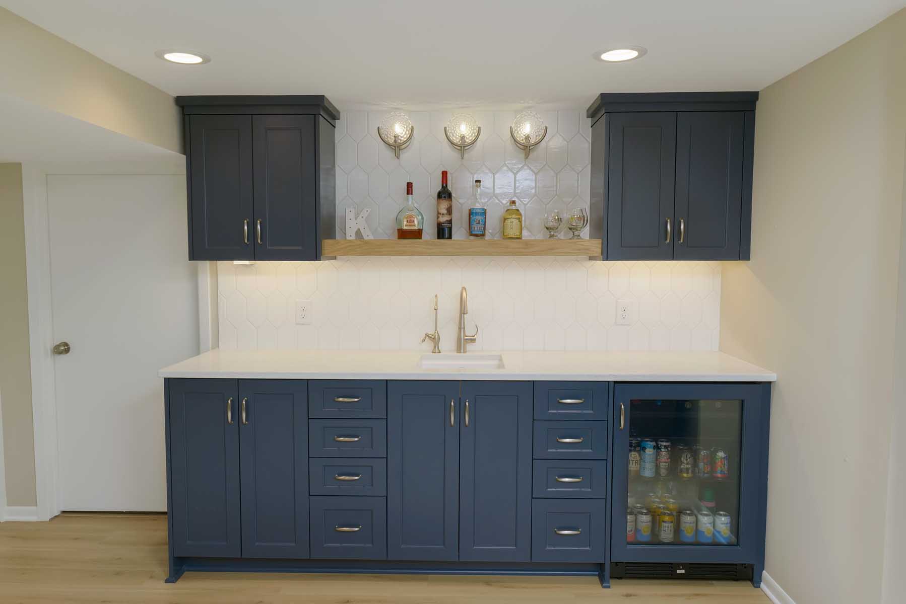 The new bar in the lower level ties in the coastal style while providing the perfect place for entertaining guests.