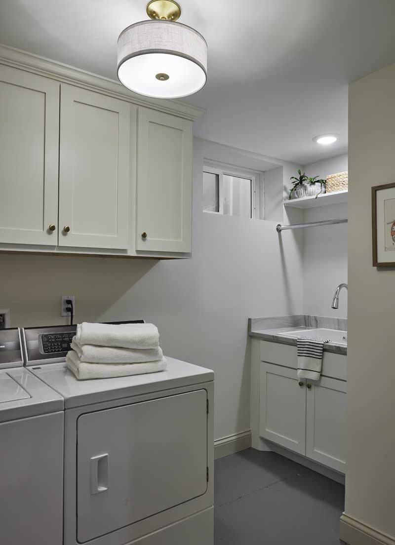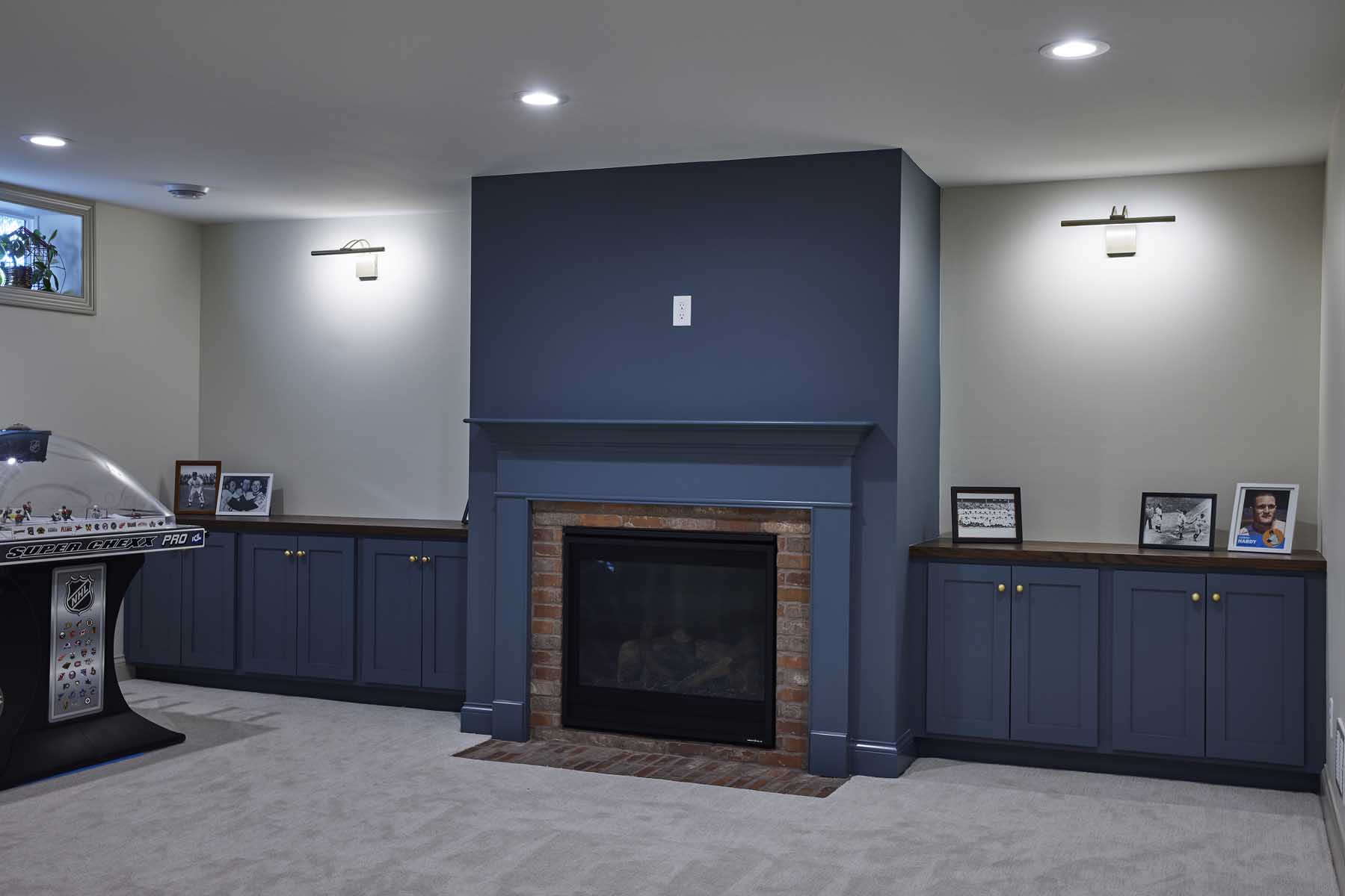 The basement gained a new bedroom with egress, a reconfigured bath, and a custom laundry room. A refreshed family room with a new fireplace and built-ins adds cozy functionality. Structural challenges were solved with creative engineering, ensuring the home feels both timeless and new.
